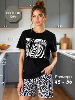 Пижама хлопковая с удлиненными шортами одежда для дома