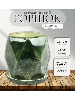 Горшок керамический Кристалл Зеленый 24х22см 7,4 л
