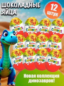 Киндер Сюрприз шоколадные яйца Динозаврики 12 штук