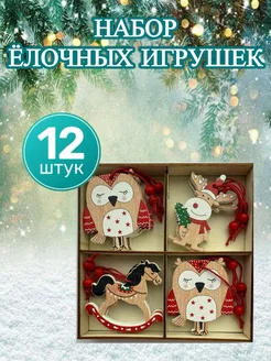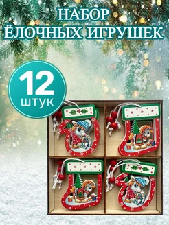 Набор деревянных ёлочных игрушек 12шт