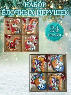 Набор елочных деревянных игрушек лошадка на ёлку 24 шт
