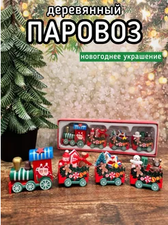 Паровозик новогодний деревянный с вагонами