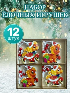 Набор елочных деревянных игрушек лошадка на ёлку 12 шт