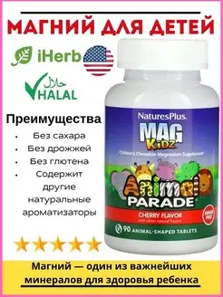 Магний для детей, магний MagKidz, Animal Parade-90 таб