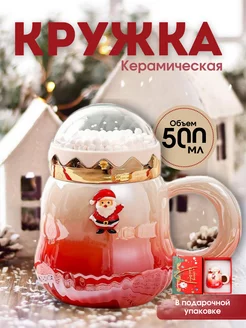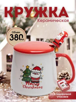 Кружка новогодняя керамическая с крышкой и ложкой подарок