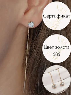 Серьги протяжки золотистые с сердечками