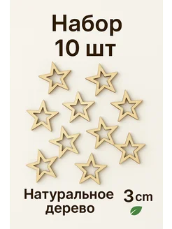 Заготовка звезда деревянная 3 см, 10 шт, для творчества