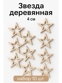 Звезда деревянная заготовка 4 см, натуральный, набор 10 шт