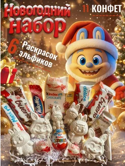 Подарочный набор киндер 11 вкусняшек и 6 раскраски из гипса