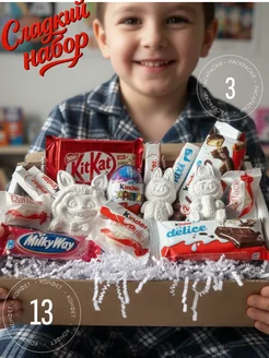 Подарочный набор киндер 13 вкусняшек и 3 раскраски из гипса