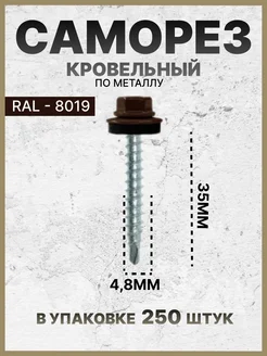 Саморез кровельный 4 8х35 RAL 8019 СЕРО-КОРИЧНЕВЫЙ 250 шт