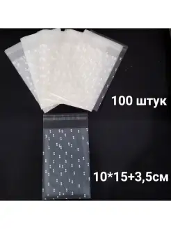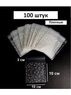 Бопп пакет с липким краем в горох 10*10см 100 штук