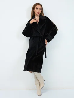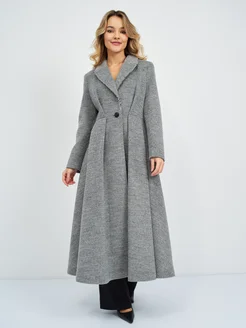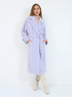 Пальто шерстяное сиреневое с поясом и английским воротником
