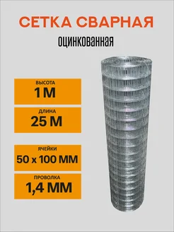 Сетка заборная оцинкованная 1 4мм 50х50 мм 1х25 м