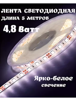 Лента светодиодная 5 метров, 4,8 Вт, холодный белый свет