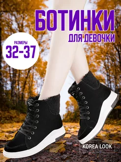Ботинки демисезонные с искусственным мехом на шнуровке