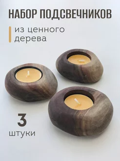 Подсвечник деревянный маленький набор 3 штуки