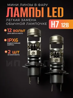 Светодиодные лампы LED Н7 мини линзы, 12В