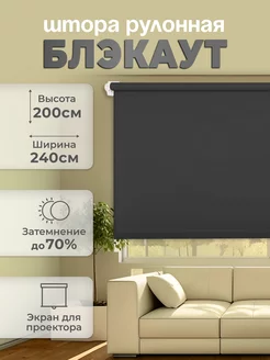 Штора рулонная черная блэкаут 2х2,4м