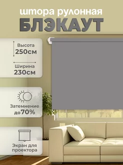 Штора рулонная серая блэкаут 2,5х2,3м