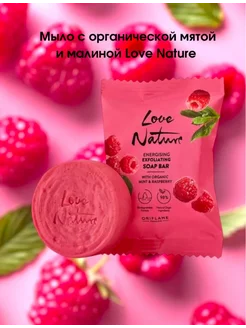 Отшелушивающее мыло с органической мятой и малиной Love Natu…