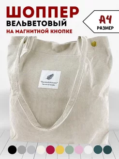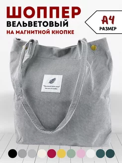 Сумка шоппер вельветовая через плечо тканевая на кнопке
