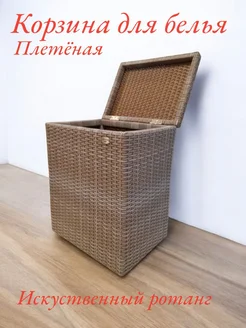 Корзина для белья с крышкой плетеная из ротанга лесной орех