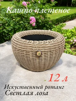 кашпо плетеное из ротанга для цветов 12 л светлая лоза