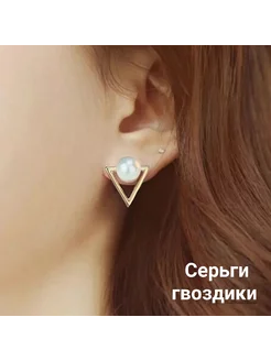 Серьги крупные гвоздики круглые квадратные пусеты бижутерные