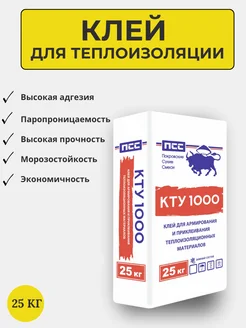 Клей для теплоизоляции КТУ1000+ армирование - 25кг