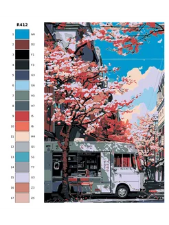 Картина по номерам R-412 "Улица с сакурой" 60х90