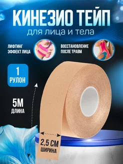 Кинезио тейп для тела и лица от морщин 2,5см. х 5м