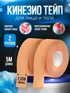 Кинезио тейп для тела и лица от морщин 2,5см. х 5м. - 2 шт