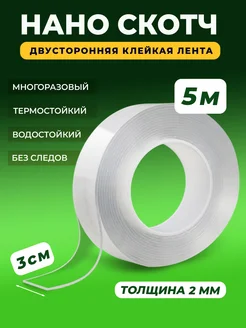 Нано скотч двусторонний многоразовая клейкая лента 5м