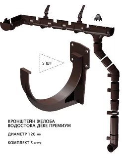 Кронштейн жёлоба водостока ПВХ ДЁКЕ Премиум 120мм, 5 штук