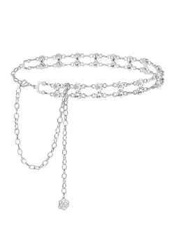 Пояс цепочка на талию тонкий с жемчугом и стразами