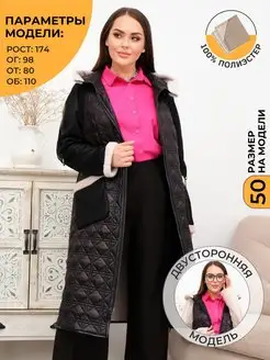 Пальто двусторонние длинное с капюшоном экомех оверсайз