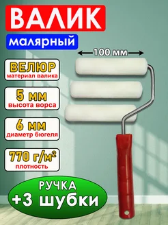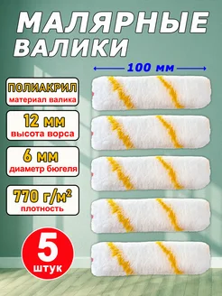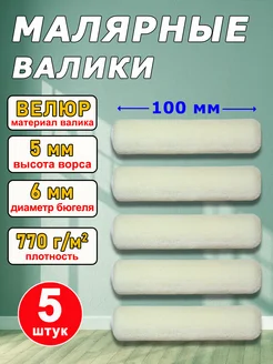 Валик малярный, валик для краски велюр 100 мм 5шт