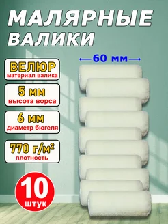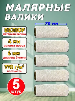 Валик малярный, валик для краски велюр 70 мм 5шт
