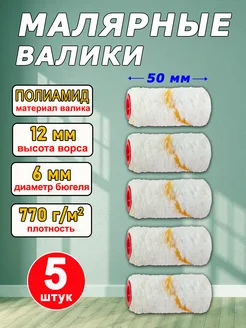 Валик малярный, валик для краски полиамид 50 мм 5 шт