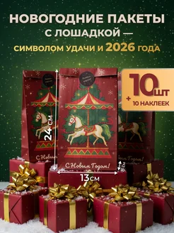 Пакеты новогодние подарочные 2026 набор 10 шт