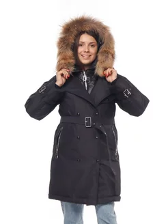 Пуховик зимний с поясом для подростков