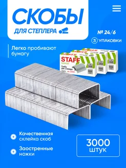Скобы для степлера канцелярские металл №24 6 набор 3000шт
