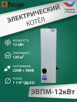 Электрокотёл 12 кВт "Ресурс ЭВПМ" для отопления 220В 380В