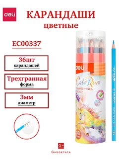 Карандаши цветные трехгранные в тубусе 36 цветов