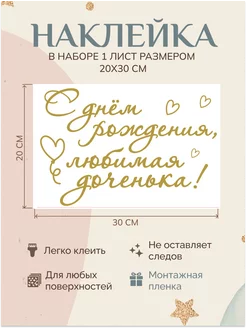 Наклейка на коробку шары конверт с днем рождения, доченька