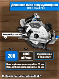 Дисковая пила аккумуляторная CS20PRO, 190мм, (без АКБ и З У)