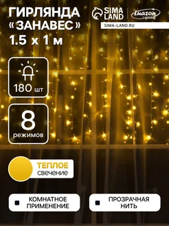 Гирлянда штора на окно 1.5 × 1 м, свечение тёплое белое