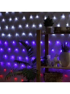 Гирлянда штора «Сеть» 1.6 × 1.6 м, свечение «Флаг России»
