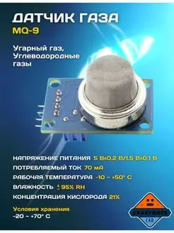 Датчик газа MQ-9 (угарный газ, углеводородные газы)